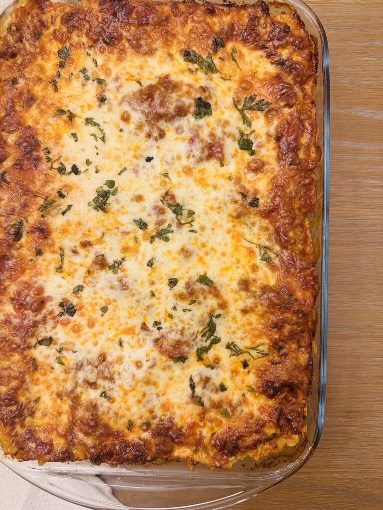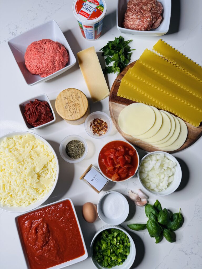 -  Italian sausage – Adds a bold, savory depth that ground beef alone can’t provide. The spices infuse the sauce and layers with a distinctly Italian taste. Blending sausage with ground chuck creates a richer, more complex sauce.