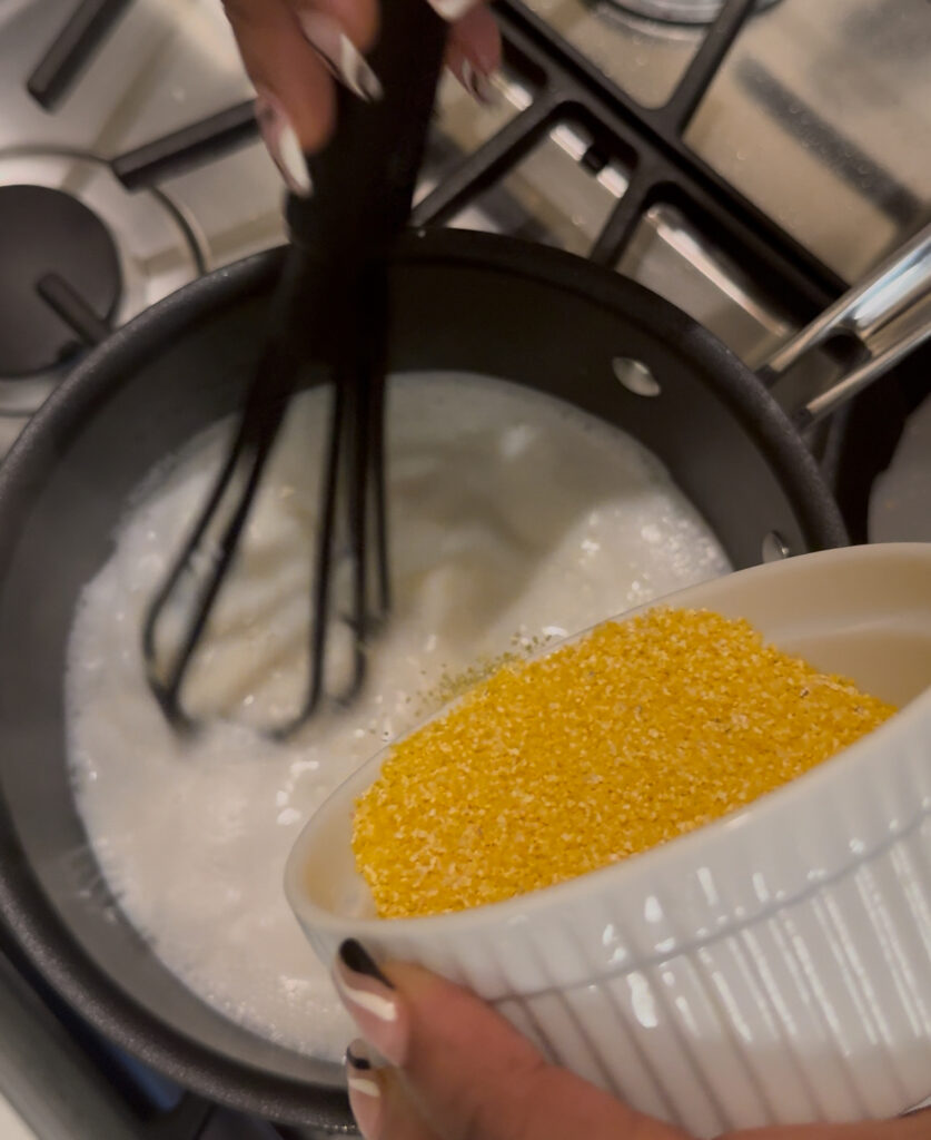 - Milk – added to yellow corn grits to make them richer, creamier, and more flavorful. While water softens the grits, milk enhances their texture and taste by adding fat, natural sweetness, and body.